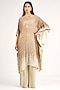Featuring an ivory kaftan in chinon base with sequins embroidery. It is paired with an inner and pants. Accentuate it with zircon dangler earrings, a clutch bag and metallic heels for festive occasion, cultural celebration or sangeet ceremony.