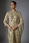 Featuring a mushroom kurta in chiffon base with sequins embroidery. it is paired with pants dupatta. Accentuate with statement jewellery and heels for a wedding ceremony or festive occasions.