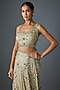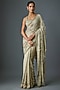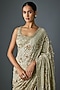 Featuring a mushroom-colored saree in chiffon base with thread embroidery. It is paired with an embroidered blouse. Accentuate the design saree with swarovski jewellery and embellished heels for a wedding, sangeet or engagement ceremony.