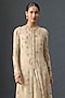 Featuring a mushroom colored jacket in silk chiffon base with abstract sequins embroidery. It is paired with an organza skirt having border details. Accentuate it with statement jewellery and embellished heels for a festive occasion, wedding or sangeet ceremony.