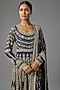 Featuring a navy anarkali in chiffon base. It is paired with churidar pants and a dupatta. Accentuate the designer anarkali with diamond or swarovski jewellery, embellished heels and a potli bag for a bridal look, Perfect wear for your wedding or sangeet ceremony.