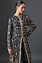 Featuring a navy jacket in silk chiffon base with abstract sequins embroidery. It is paired with an organza skirt having border details. Accentuate it with statement jewellery and embellished heels for a festive occasion, wedding or sangeet ceremony.