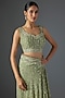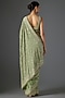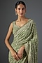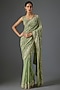 Featuring a pista green saree in chiffon base with thread embroidery. It is paired with an embroidered blouse. Accentuate it with statement earrings and heels for festive occasions, sangeet or engagement ceremonies.