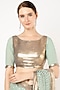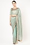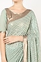 Featuring a porcelain blue saree in chiffon base with gold sequins sheeted embroidery. It is paired with a matching blouse.