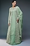 Nakul Sen features a mesmerizing Porcelain Blue Jacket Set that captivates with its elegance. The eye-catching jacket is crafted in silk chiffon. It is paired with an inner, a silk crinkled skirt, a can-can and a dupatta. Accessorize the designer jacket set with statement earrings and heels for weddings, sangeet or engagement ceremonies.