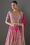 Featuring a rani pink lehenga in chiffon base with sequins embroidery. It is paired with a blouse and a dupatta. Accentuate it with dangler earrings and heels for a wedding, sangeet or engagement ceremony.