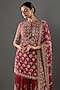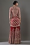 Featuring a red kurta in chiffon base with sequins embroidery. It is paired with gharara pants and a dupatta. Accentuate it with dangler earrings and heels for a wedding, sangeet or engagement ceremony.