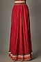 Featuring a red jacket in chiffon base, adorned with thread embroidery. It is paired with a skirt and a blouse. Style it with jhumkas and wedges for a festive or wedding ceremony.
