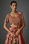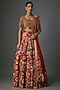 Featuring a tomato red lehenga in silk chiffon base with thread embroidery. It is paired with an embroidered blouse and an embroidered dupatta. Accentuate the design lehenga with polki or meenakari jewellery, embellished heels and a potli bag for a bridal look, Perfect for wedding, sangeet or engagement ceremony.