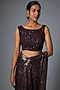 Featuring a wine saree in chiffon base with sequins embroidery. It is paired with a matching blouse. Accentuate it with statement jewellery and heels for a wedding or sangeet ceremony.