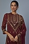 Wine Embroidered Kurta Set
