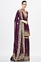 Featuring an aubergine kurta in chiffon base with sequins embroidery. It is paired with matching sharara pants and a dupatta.