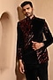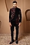 Featuring a black bandhgala in velvet base with french knot embroidery. It is paired with a shirt and pants. Style it with pair of shoes for a reception, wedding, sangeet or engagement ceremony.