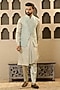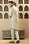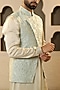 Featuring an eton green bundi jacket in dupion silk base with embroidery. It is paired with a silk kurta and pants. Style it with mojaris for a festive occasion, reception, wedding, mehendi or engagement ceremony.