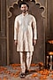 Featuring a gold kurta in dupion silk base with gota embroidery. It is paired with pants. Style it with pair of kolhapuri sandals and a bracelet for a festive occasion, cultural event, wedding or engagement ceremony.