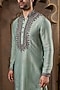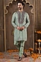 Featuring a green kurta in tissue silk base with embroidery. It is paired with pants. Style it with pair of kolhapuri sandals and a bracelet for a festive occasion, cultural event, mehendi, wedding or engagement ceremony.
