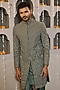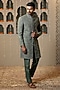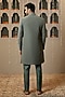 Featuring a sage green indowestern in poly silk base with handwork. It is paired with a kurta and pants. Style it with mojaris for a reception, wedding, mehendi, sangeet or engagement ceremony.