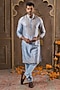 Featuring a sky blue kurta in chanderi silk base with embroidery. It is paired with pants. Style it with pair of kolhapuri sandals and a bracelet for a festive occasion, cultural event, wedding or engagement ceremony.