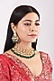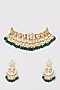 Featuring a micro gold finish necklace studded with green onyx and kundan polki, set in brass. It is paired with a matching pair of earrings.