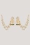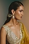 Featuring a pair of gold finish jhumka earrings studded with kundan polki and green drops, set in brass. Perfect for festive occasions, weddings or cultural events, this jewellery is a wardrobe must for those who love to shine effortlessly.