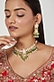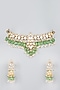 Featuring a gold finish necklace studded with kundan polki and fluorite drops, set in brass. It is paired with a matching pair of earrings.
