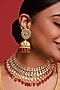 Featuring a gold finish necklace studded with pink kundan polki and pink drops, set in brass. It is paired with a matching pair of jhumka earrings.