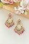 Gold Finish Kundan Polki & Pink Stone Chandbali Earrings