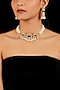 Featuring a gold finish choker necklace studded with pearl drops, set in brass. It is paired with a matching pair of earrings.