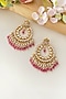 Featuring a pair of micro gold finish chandbali earrings studded with kundan polki and pink drops, set in brass. Perfect wear for festive occasions or wedding ceremonies.