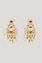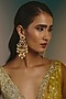 Featuring a pair of micro gold finish dangler earrings studded with multi-colored kundan polki and pearl drops, set in brass. Perfect for festive occasions, weddings or cultural events, this jewellery is a wardrobe must for those who love to shine effortlessly.