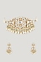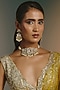 Featuring a micro gold finish choker necklace studded with kundan polki and pearl drops, set in brass. It is paired with a matching pair of earrings. Perfect for festive occasions, weddings or cultural events, this jewellery is a wardrobe must for those who love to shine effortlessly.