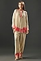 Featuring a beige top in crepe base. It is paired with pants and an inner. Accentuate it with pants, stud earrings and heels for a casual look.