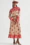 Featuring a beige maxi boho dress in georgette base with floral print. Accentuate it with statement earrings for a stylish ensemble, ideal for a boho-chic vibe, casual outings, art events, or brunches.