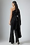 Featuring a black top in banana crepe base. It is paired with pants. Accentuate it with zircon earrings and heels for evening wear or date nights.