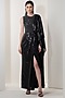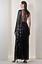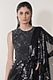 Featuring a black draped saree gown in shimmer pleated base with geometric hand embellishments. This contains only one piece.