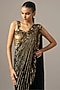 Featuring a black saree in georgette base with baroque details. It is paired with an embroidered blouse. Accentuate it with statement earrings and heels for a stylish ensemble, perfect for festive celebrations or wedding ceremonies.