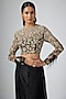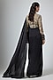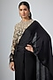 Featuring a black draped saree in georgette satin base. It is paired with a blouse. Accentuate it with zircon jewellery and heels for a sangeet or cocktail ceremony.