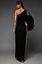 Black Jersey Embellished Off-Shoulder Cape Gown