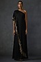 Featuring a black off-shoulder jumpsuit in jersey base with hand and machine embellishments. Style with dangler earrings and strappy heels for an elegant look, ideal for cocktail and evening wear.