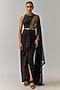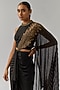 Featuring a black draped concept saree in jersey base with hand embellishments. It is paired with a blouse. Style it with statement jewellery and heels for a sangeet or engagement ceremony.