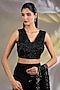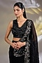 Featuring a black draped saree in jersey base with fern hand and machine embellishment. It is paired with a blouse. Accentuate it with statement earrings and heels for sangeet ceremonies.