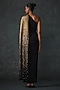 Black Jersey Stripe Hand Embellished Off-Shoulder Gown