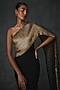 Featuring a black off-shoulder gown in jersey base with stripe hand embellishments. Accentuate it with statement earrings and block heels for an evening parties, sangeet or cocktail ceremony.