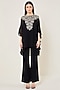Featuring a black frilled tunic in viscose georgette base. It is paired with an inner. Accentuate it with pants, stud earrings and heels for casual outings or evening wear.