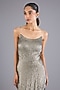 Featuring a black long gown in viscose georgette base. Style it with strappy heels, bold earrings, and a sleek low ponytail for a polished look. Perfect for cocktail nights, receptions, sangeet functions, and glamorous festive events.
