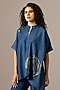 Featuring a denim blue tunic in demin base. Balance the structure with tailored pants and sleek heels for effortless elegance.