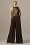 Featuring a brown box pleated jumpsuit in georgette base with matrix details. Style with dangler earrings and strappy heels for an elegant look, ideal for cocktail and evening wear.