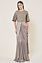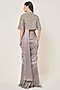 Featuring a champagne saree in shimmer chiffon base. It is paired with a blouse and a cape. Accentuate it with dangler earrings and heels for cocktail parties or sangeet ceremonies.
