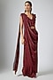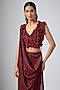 Featuring a cherry red draped saree in jersey base with floral hand embellishments. It is paired with a blouse. Accentuate it with zircon jewellery and heels for a sangeet or cocktail ceremony.
