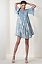 Featuring a cyan blue gathered dress in georgette base with floral hand and machine embellishments.